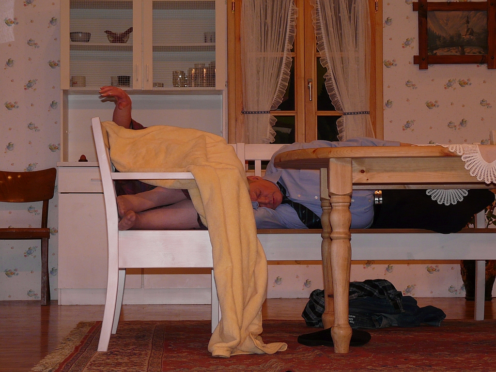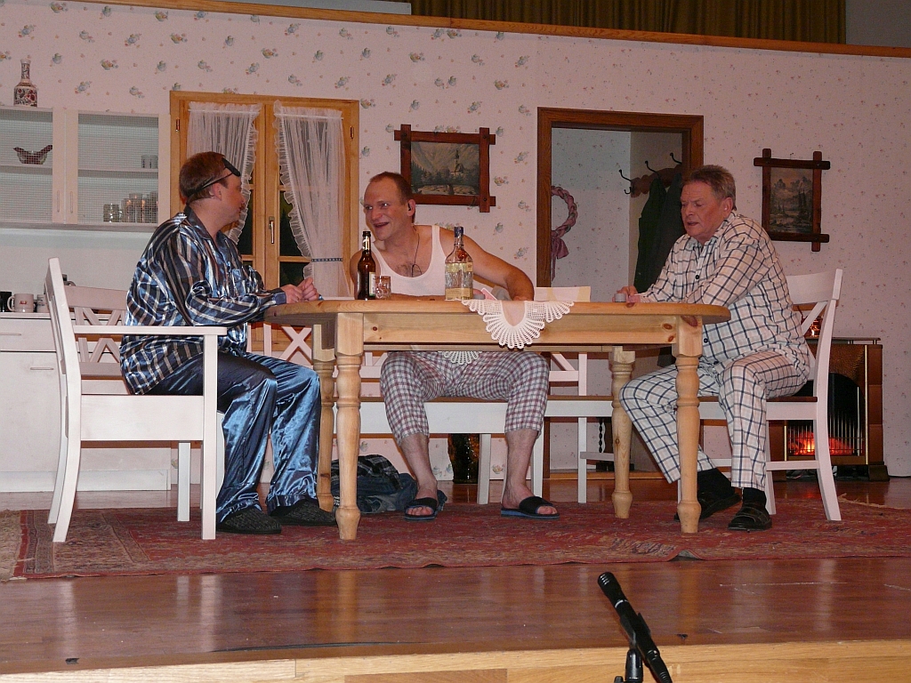 Die Sache wird höchst Pikant, als Herr Schlüders wegen eines Besuches im Nachtlokal, an dem auch Johann und Gerhard teilnehmen, von seiner Frau vor die Tür gesetzt wird. Die vielen "Fremdenzimmer" - und als die Oma letztendlich in der Küche schlafen muss, ist das Theater auf der Küchenbank da.